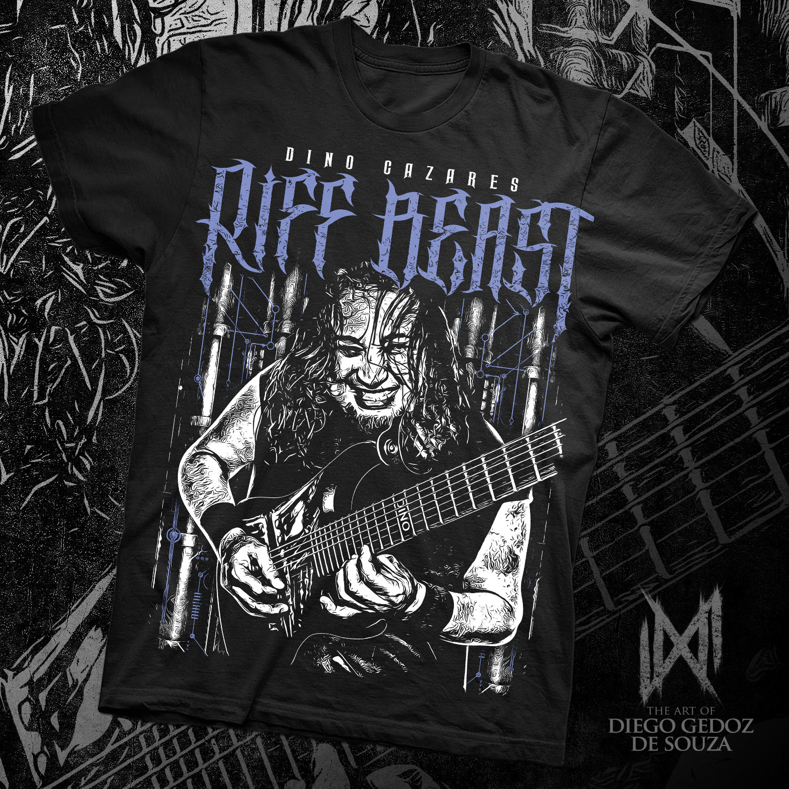 Shirt design for Hatewear, a tribute to Dino Cazares from Fear Factory, Asesino, Brujeria, Divine Heresy & more!