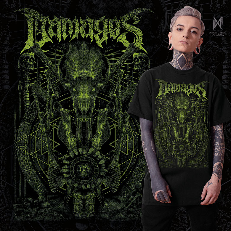 Shirt design for the American death metal band Damages.